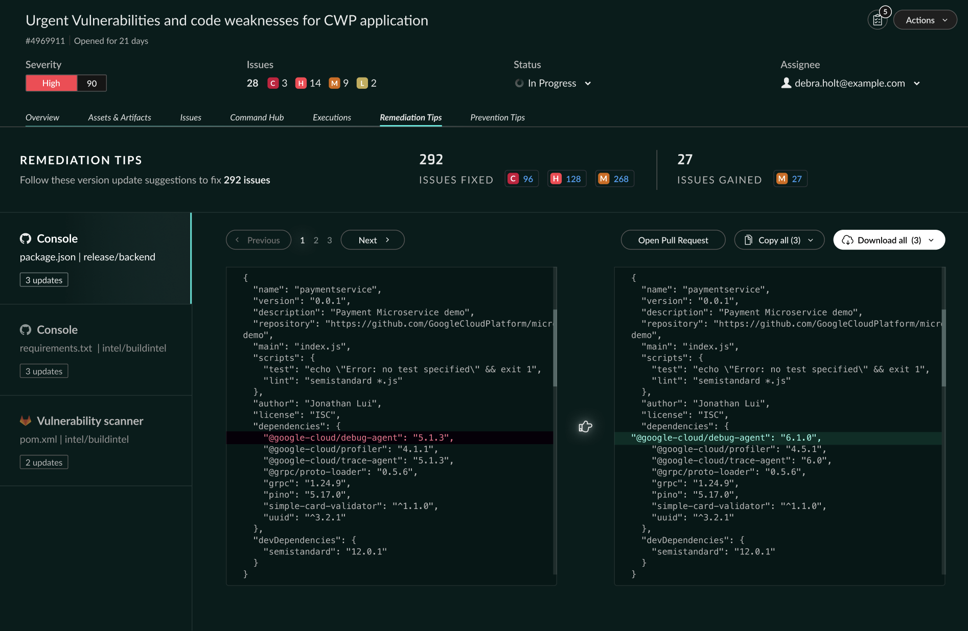 Filtra le informazioni correlando i risultati con un contesto esteso di codice, cloud e runtime.