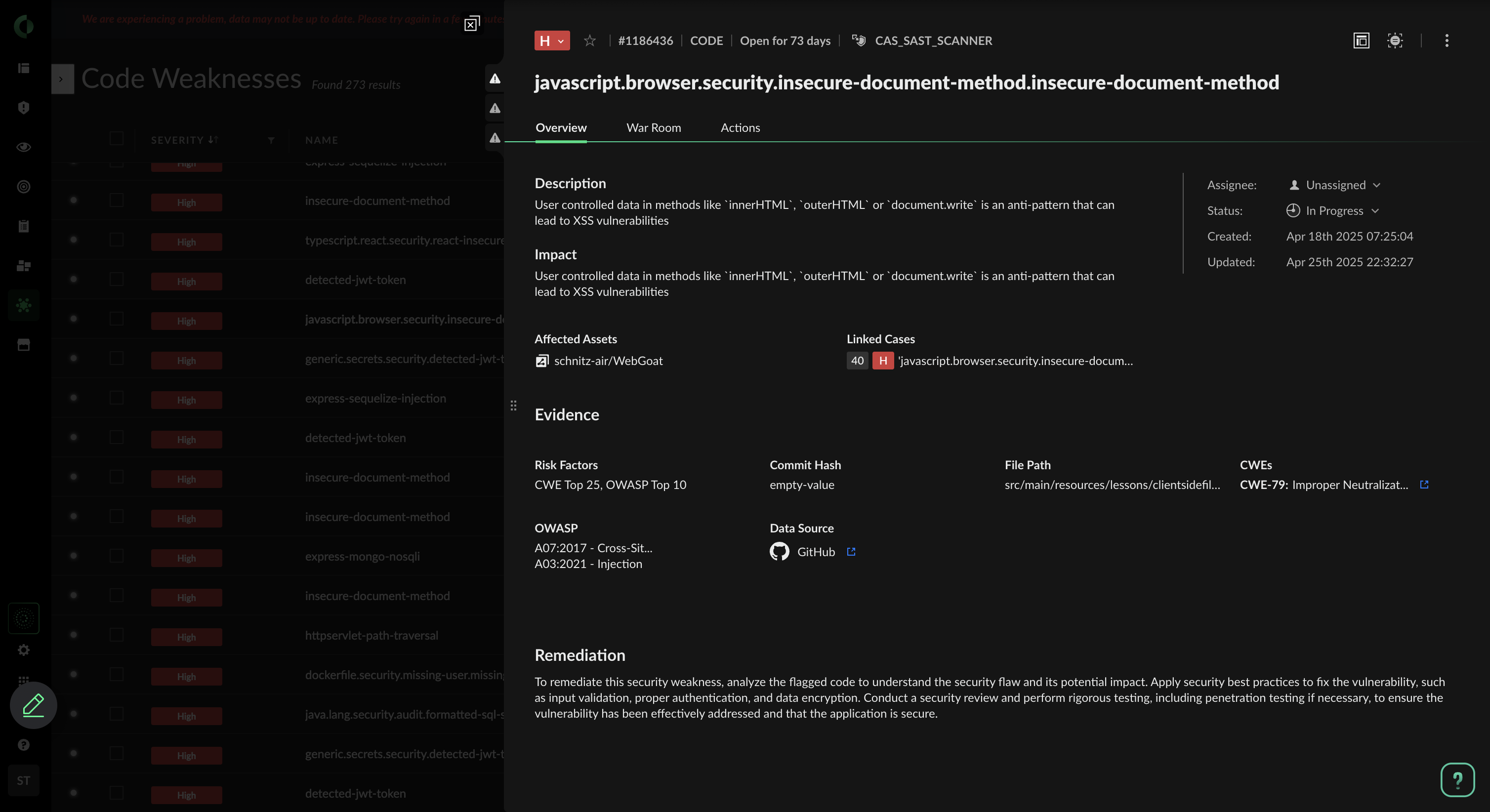 Consolida tutti i problemi di sicurezza delle applicazioni e insight forniti dai principali fornitori in un'unica piattaforma aperta, consentendo ai team di sicurezza di migliorare il livello di sicurezza, la definizione delle priorità e gli sforzi di prevenzione, il tutto senza costringere gli sviluppatori a cambiare strumenti.