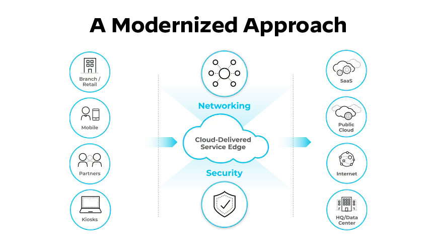 Il modello SASE per l'accesso remoto sicuro fa migrare le aziende da un approccio alla sicurezza di rete basato sul perimetro e sull'hardware ad un approccio che fornisce un accesso remoto sicuro alle applicazioni, ai dati e agli strumenti aziendali per una forza lavoro dispersa che lavora da qualsiasi luogo - casa, filiale o sede centrale.